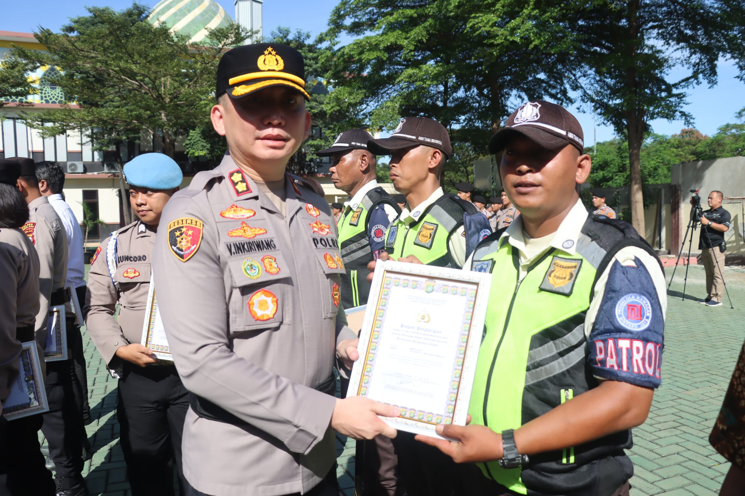 “Semoga penghargaan ini memotivasi kita semua untuk terus berbuat baik, memperkuat sinergi, dan meningkatkan pelayanan kepada masyarakat guna menciptakan situasi kamtibmas yang kondusif. Bekerjalah dengan hati, junjung tinggi nilai-nilai kemanusiaan, dan hindari segala bentuk pelanggaran.”tutupnya