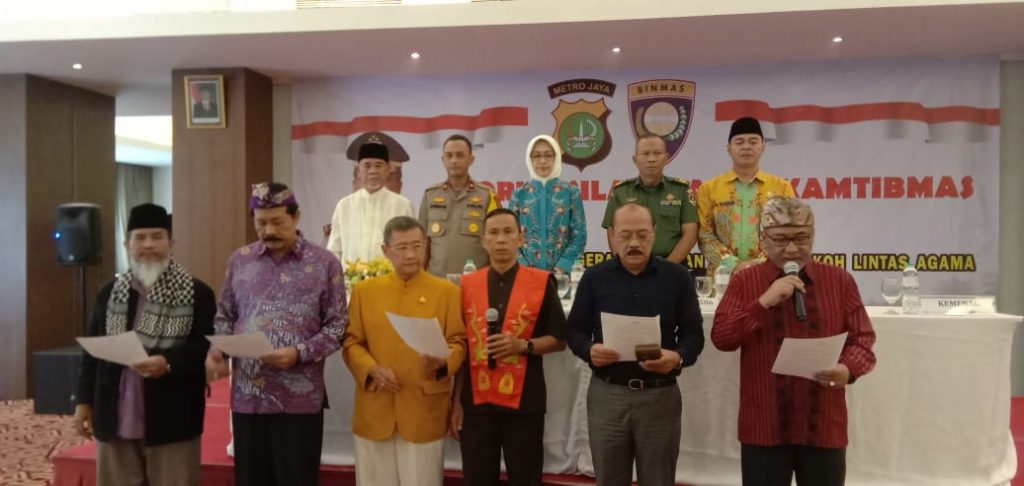 Kegiatan yang diselenggarakan oleh Sat Binmas Polres Tangerang Selatan tersebut mengambil tema “Kita Sukseskan Pemilu 2019 dengan Aman dan Damai melalui Peran Tokoh Lintas Agama”.
