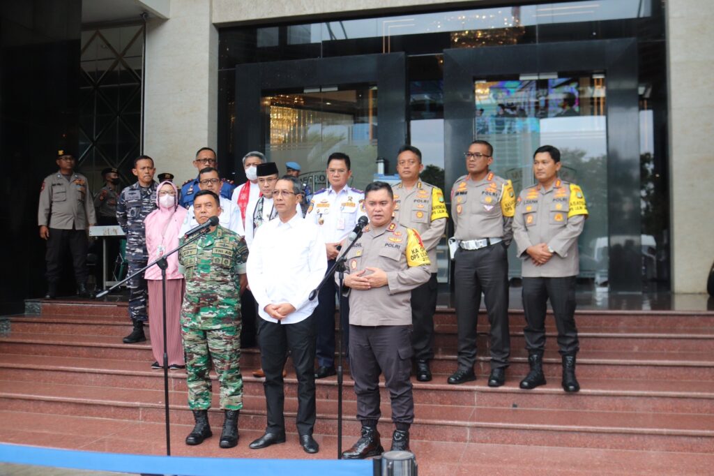 Jakarta – Kapolda Metro Jaya, Pejabat Gubernur DKI Jakarta dan Kasdam Jaya yang mewakili Pangdam Jaya melakukan pengecekan kesiapan pengamanan malam tahun baru 2023. Pertemuan dilaksanakan di Markas Polda Metro Jaya, Jakarta pada Jumat (30/12/2023).
