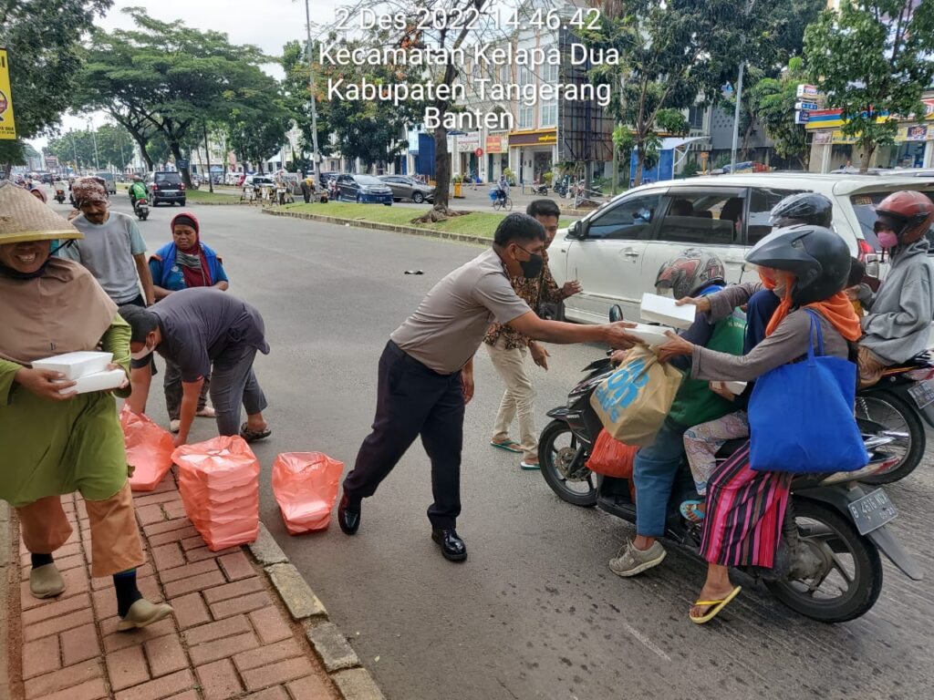 Tangerang, Polsek Kelapa Dua setiap Jumat Melaksanakan kegiatan Jum’at Bekah, Dengan Membagikan 70 Paket Nasi kotak kepada para pengguna jalan yang melintas di depan komando polsek.