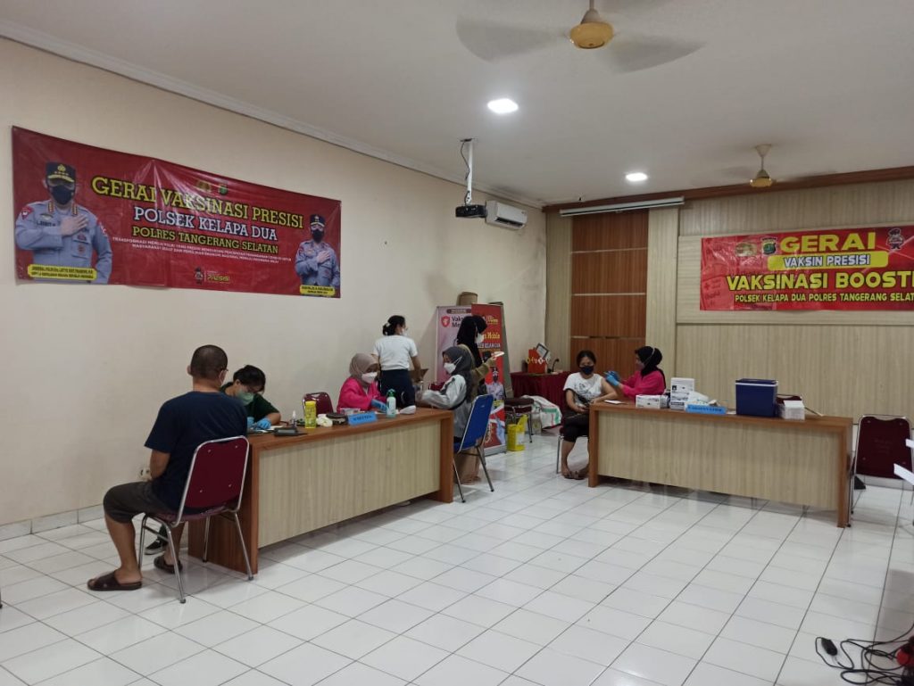 Salah satunya adalah gerai vaksin presisi Polsek Kelapa Dua yang berada di Aula Mapolsek Kelapa Dua Jl. Boulevard Raya Gading Serpong Kelapa Dua Tangerang.