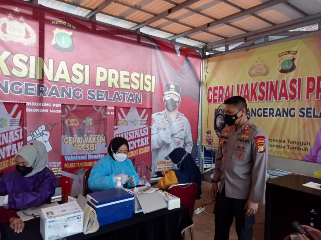 Kapolres Tangsel Tinjau Pelayanan Vaksinasi di Gerai vaksinasi Presisi Polres Tangerang Selatan
