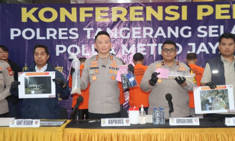 Turut hadir dalam konferensi pers tersebut, Kapolsek Curug KOMPOL Kresna Ajie Perkasa, S.I.K., M.I.K., Kasat Reskrim Polres Tangsel AKP Wira Graha Setiawan, S.Tr.K., S.I.K., C.B.A., serta Kasi Humas Polres Tangsel AKP Agil Sahril, S.H.